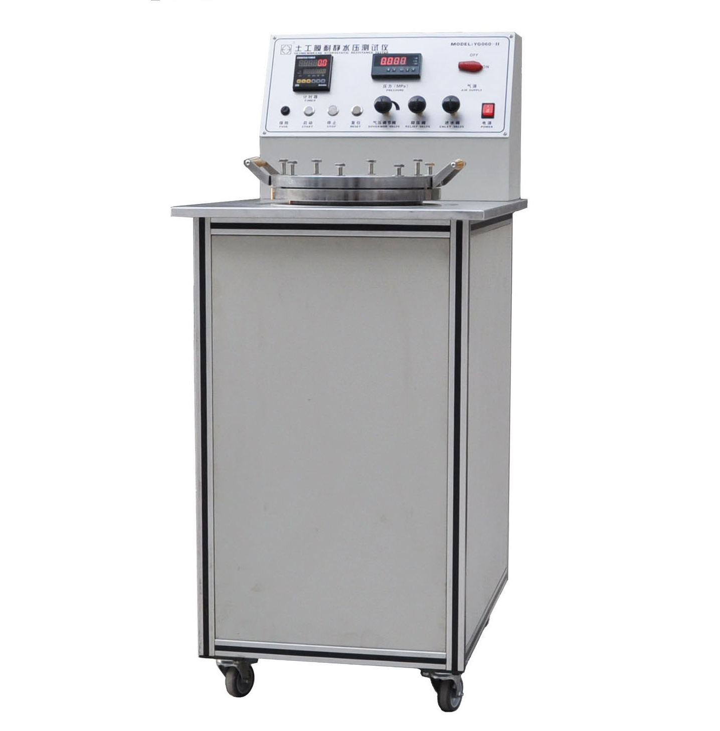 224 YG060-Ⅲ 土工膜耐靜水壓測試儀 GB/T19979.1-2006、GB/T19979.2-2006、GB/T17642、JTG E50 T1142等標準。